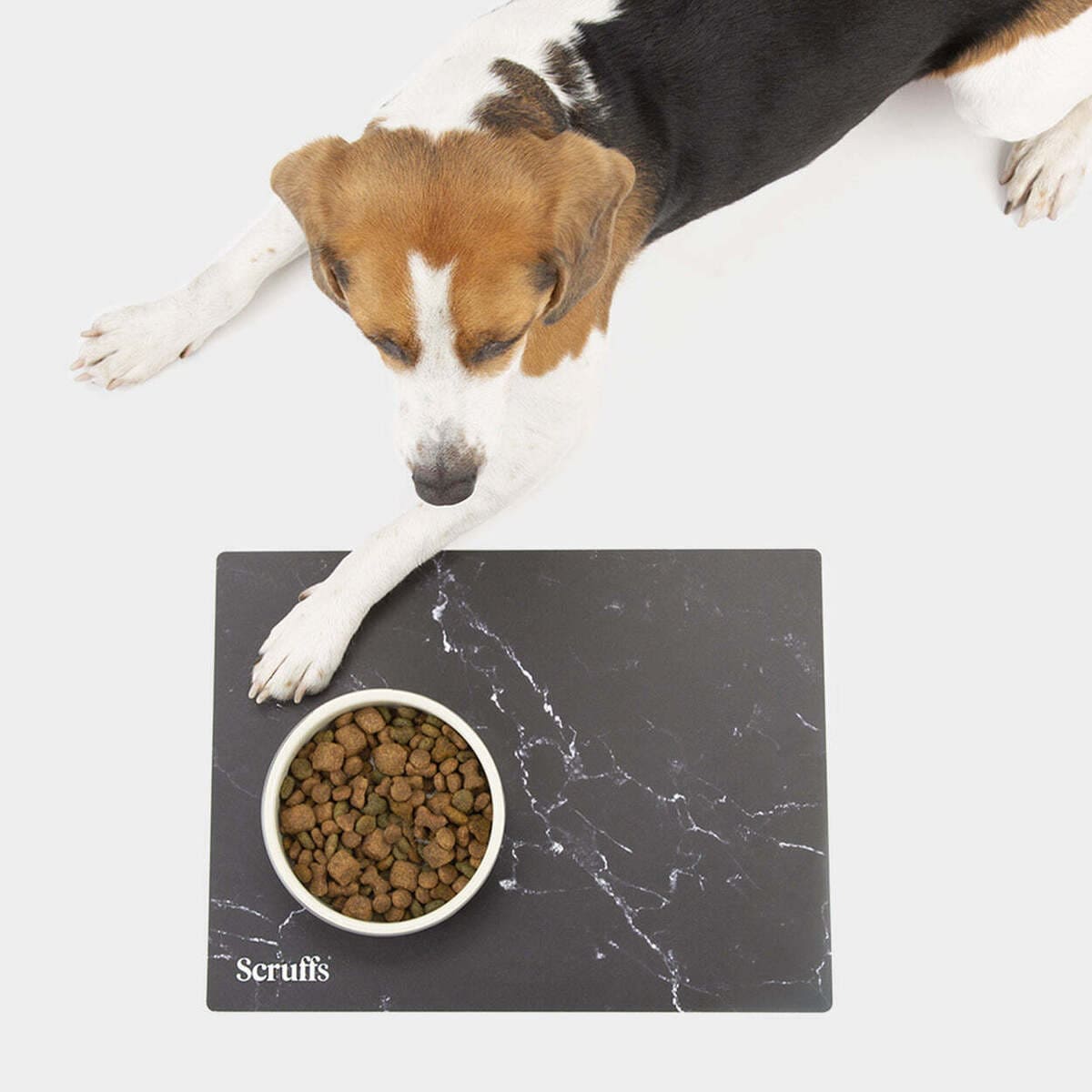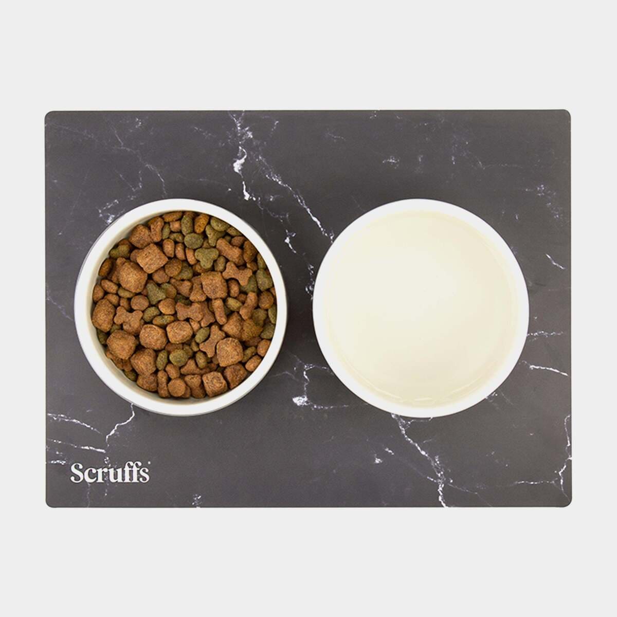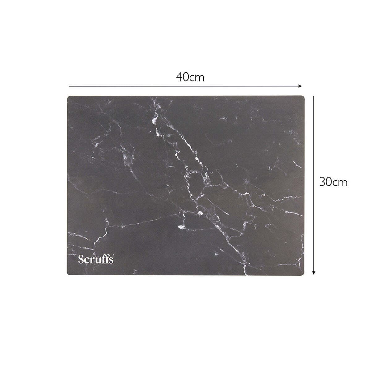 Коврик под миску для собак Scruffs Placemat, черный мраморный принт — это компактный коврик 40×30 см для одной миски, который защищает пол от капель воды и крошек корма и фиксирует миску на месте за счёт антискользящего основания.