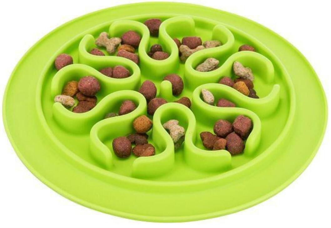 TRIXIE Slow Feed подойдет собакам, которые едят «на скорость», возбуждаются у миски и нуждаются в более спокойном формате кормления. Вместо того чтобы заглатывать корм большими порциями, собака будет вылизывать мягкий корм из рельефных «кармашков» — это и медленнее, и полезнее для желудка, и спокойнее для нервной системы.