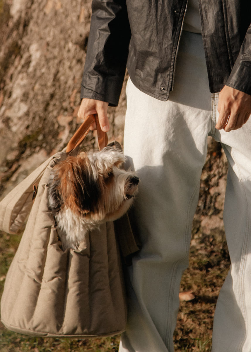 Переноска для собак бежевая ручной работы