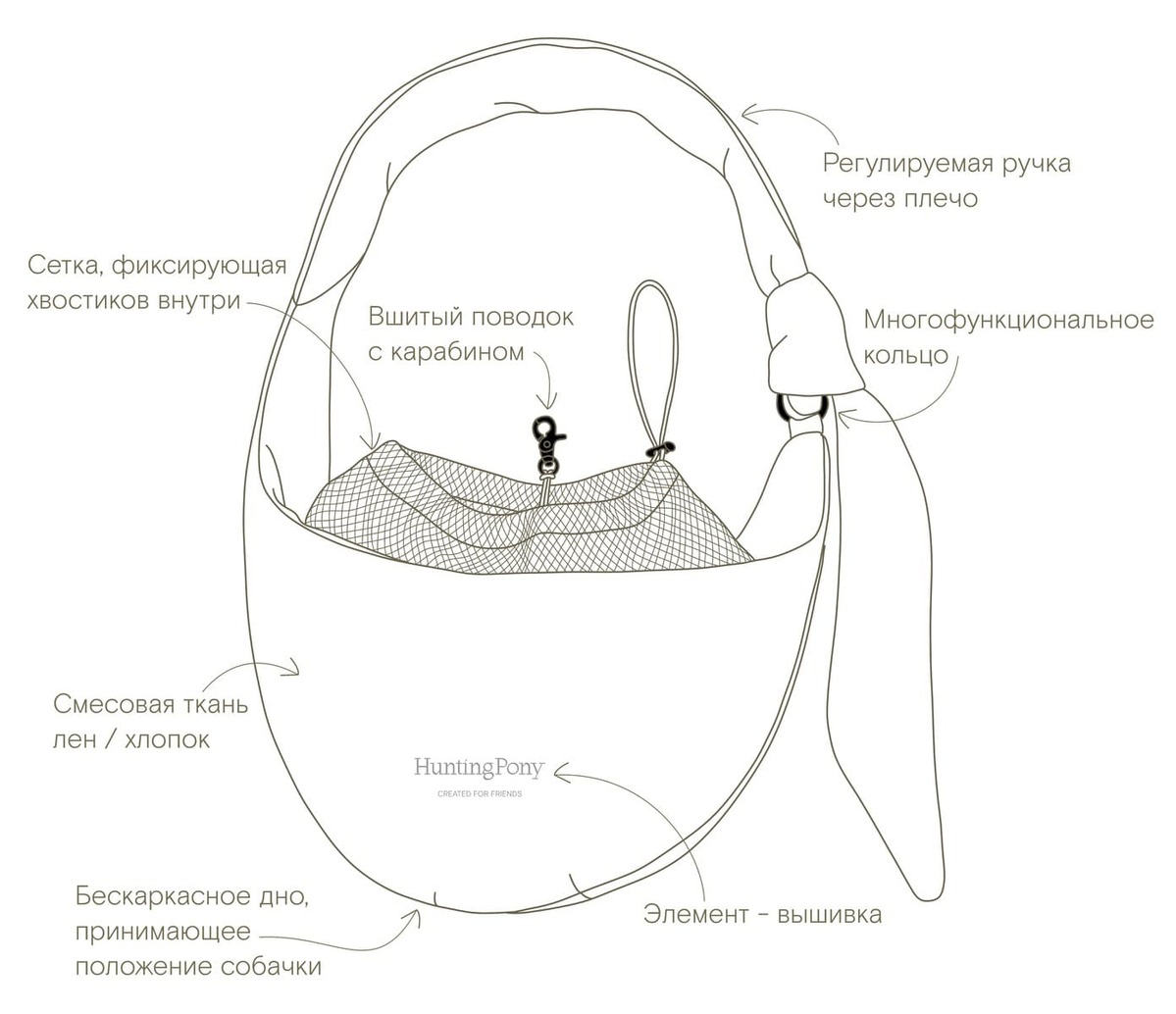 Будьте первым, кто оставил отзыв на “Сумка-слинг для собак HuntingPony Пони-Кенгурони, Лен”