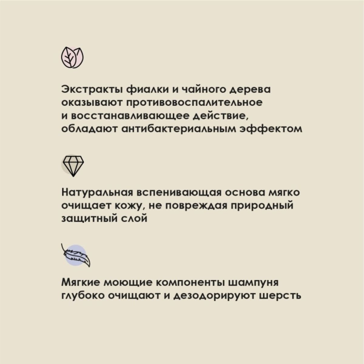 | Состав | Вода, лаурет сульфат натрия, кокоамидопропилбетаин, кокодиэтаноламид, хлорид натрия, масло цитронеллы, масло гвоздики, отдушка, экстракт чайного дерева, экстракт фиалки, метилхлороизотиазолинон, метилизотиазолинон, трилон Б, лимонная кислот |