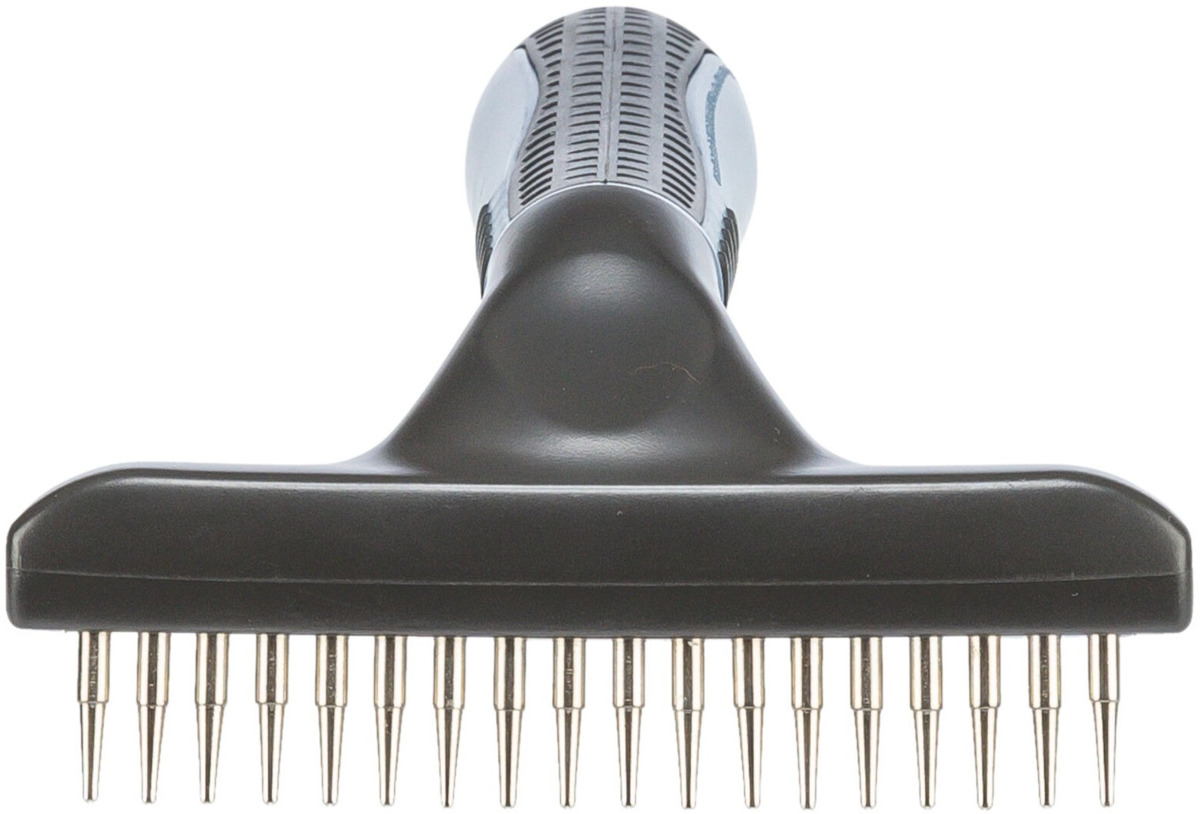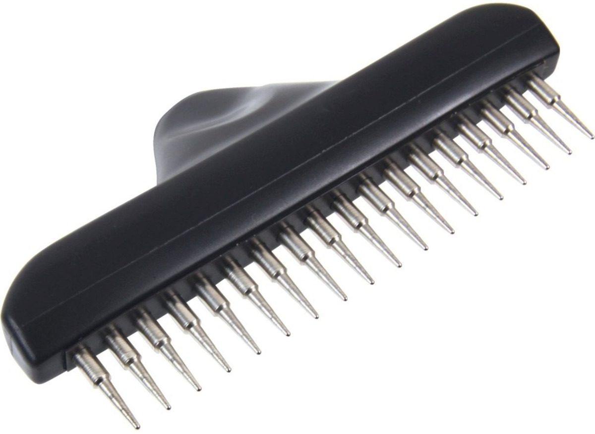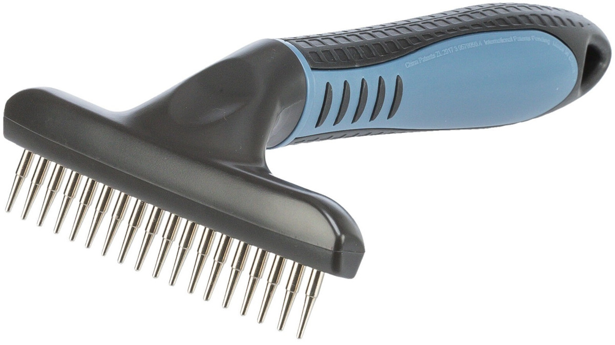 Эргономичная ручка обеспечивает комфорт в использовании, а прочные металлические зубцы безопасно и деликатно воздействуют на кожу. Подходит для груминга собак любых пород с густой и длинной шерстью.