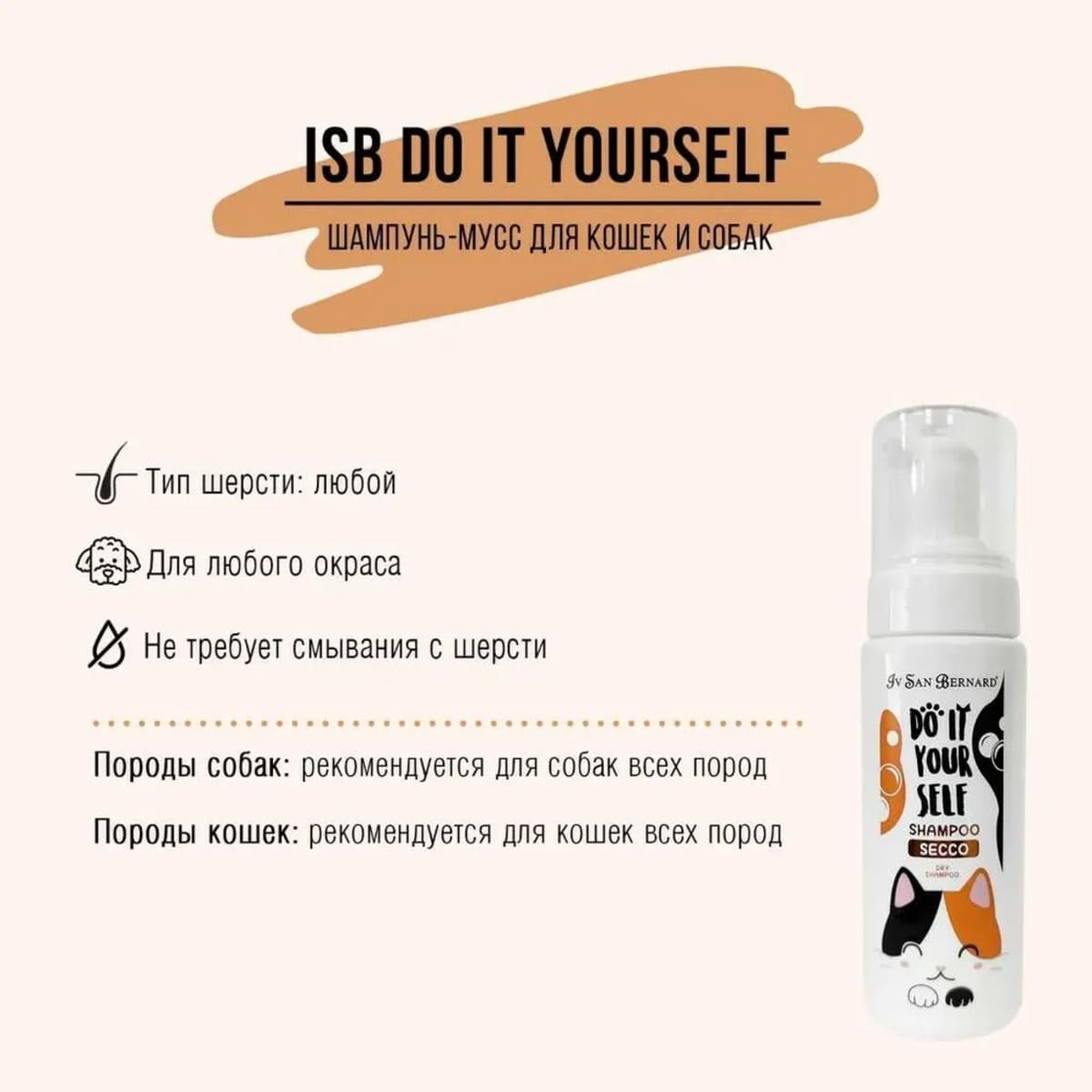Шампунь-мусс для собак Iv San Bernard Do It Yourself без смывания, 200 мл