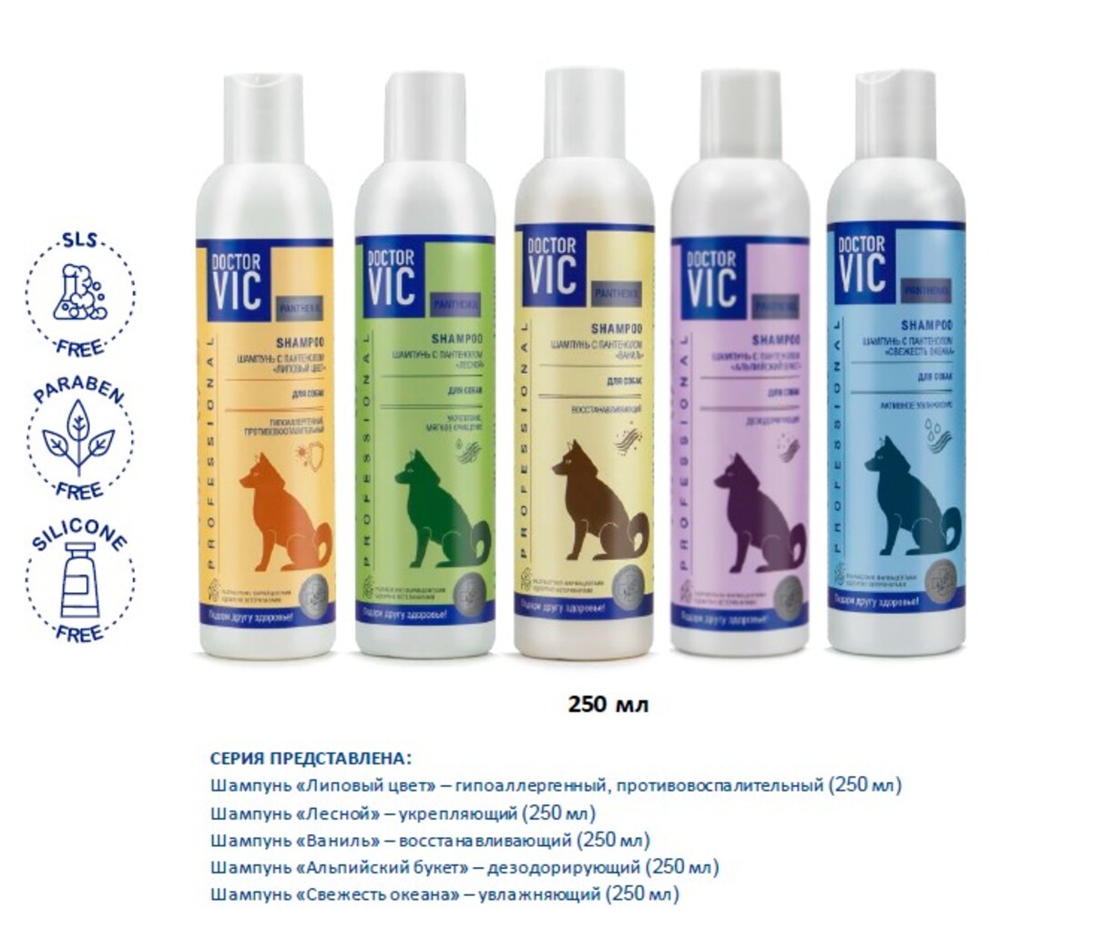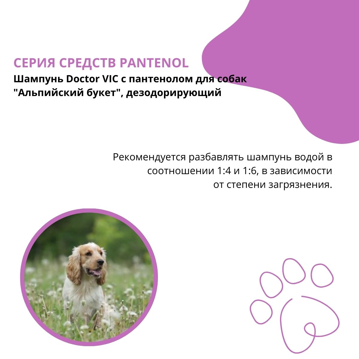 Шампунь Doctor VIC с пантенолом для собак «Альпийский букет», дезодорирующий