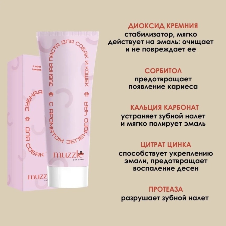| Состав | Вода, диоксид кремния, глицерин, сорбитол, кальция карбонат, пропиленгликоль, диоксид титана, карбоксиметилцеллюлоза, цитрат цинка, протеаза, метилпарабен, этилпарабен, вкусоароматическая пищевая добавка. |